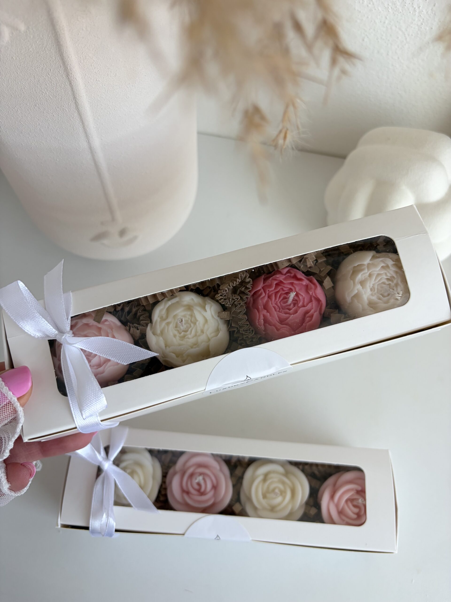 Doprajte si okamih výnimočnosti s darčekovým setom prémiových sójových sviečok v tvare pivónky. Každý detail týchto ručne odlievaných kúskov spája eleganciu, jemnú krásu a vôňu, ktorá prebudí zmysly.