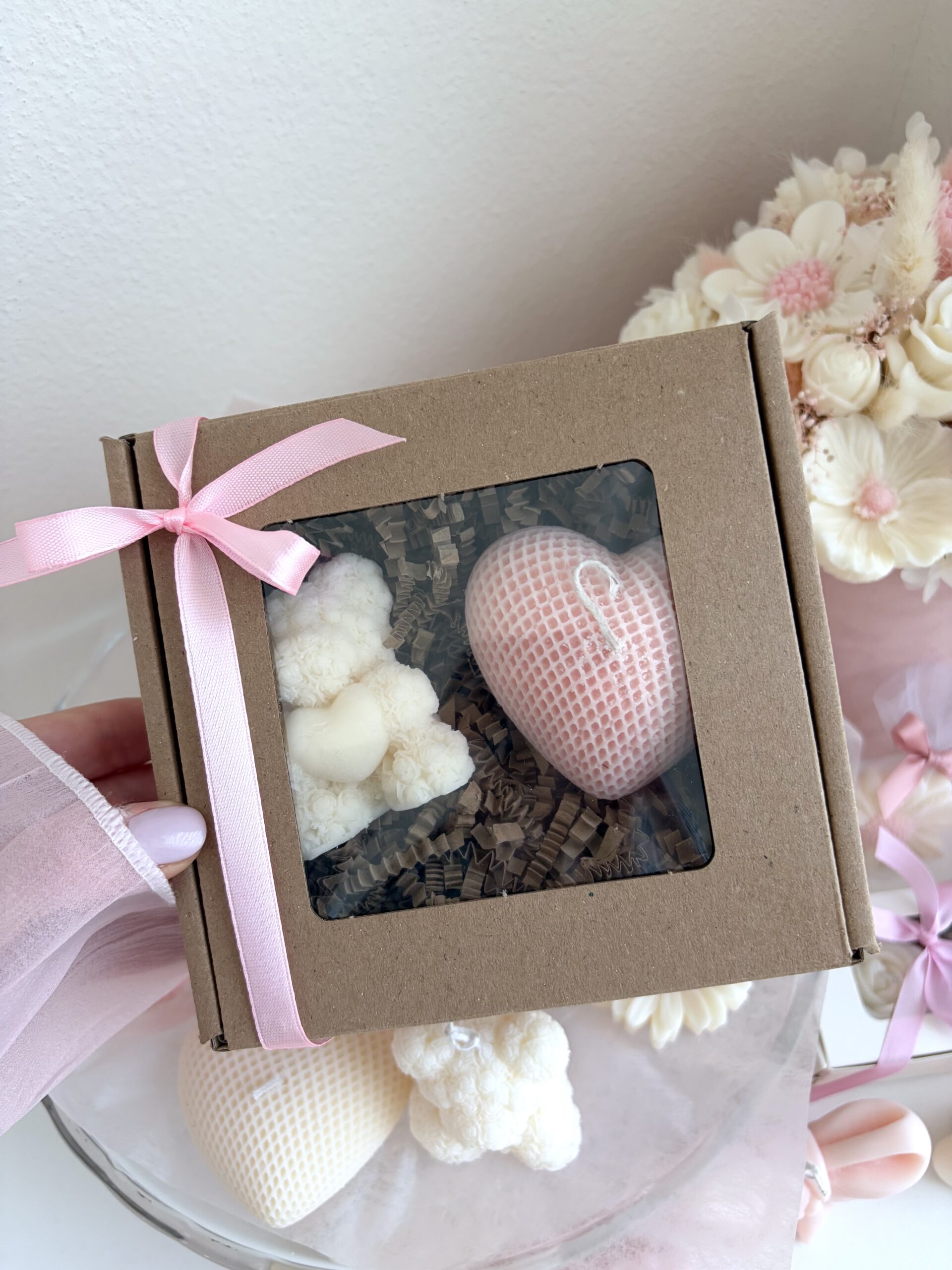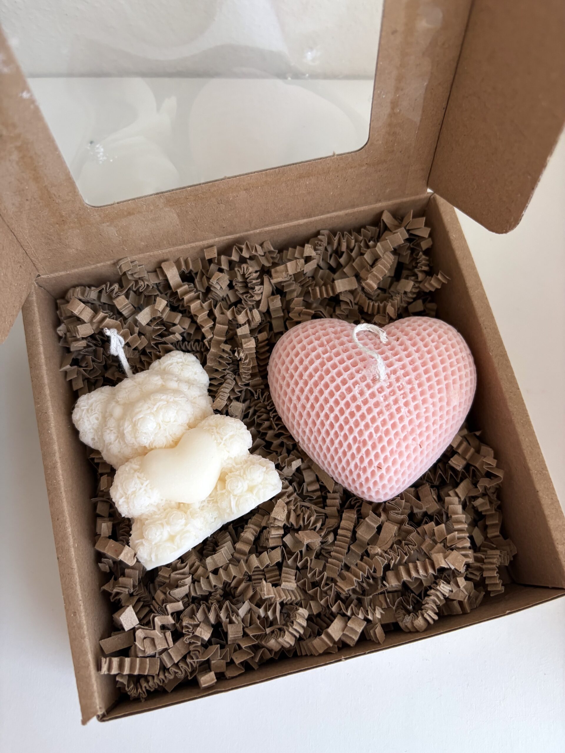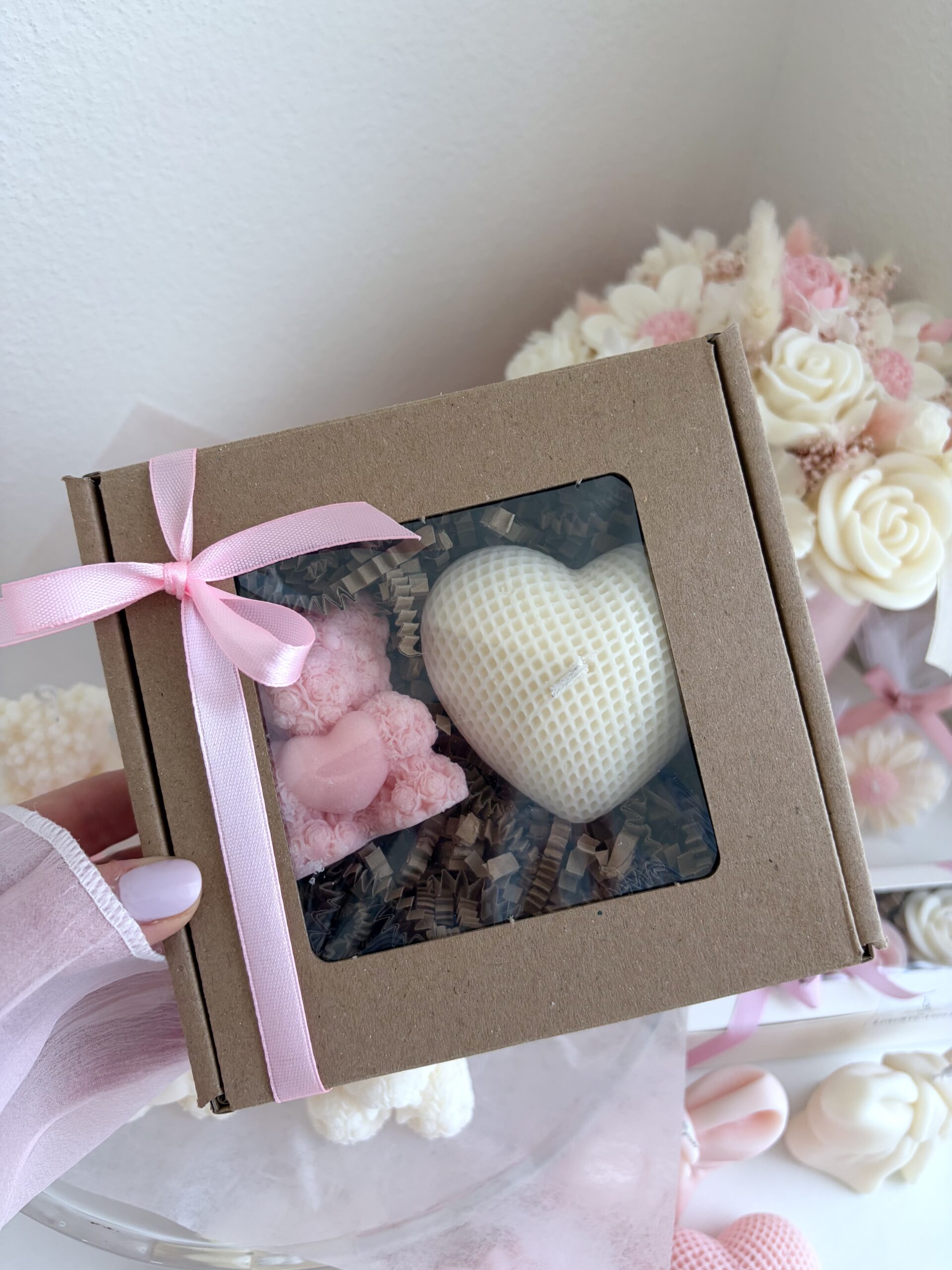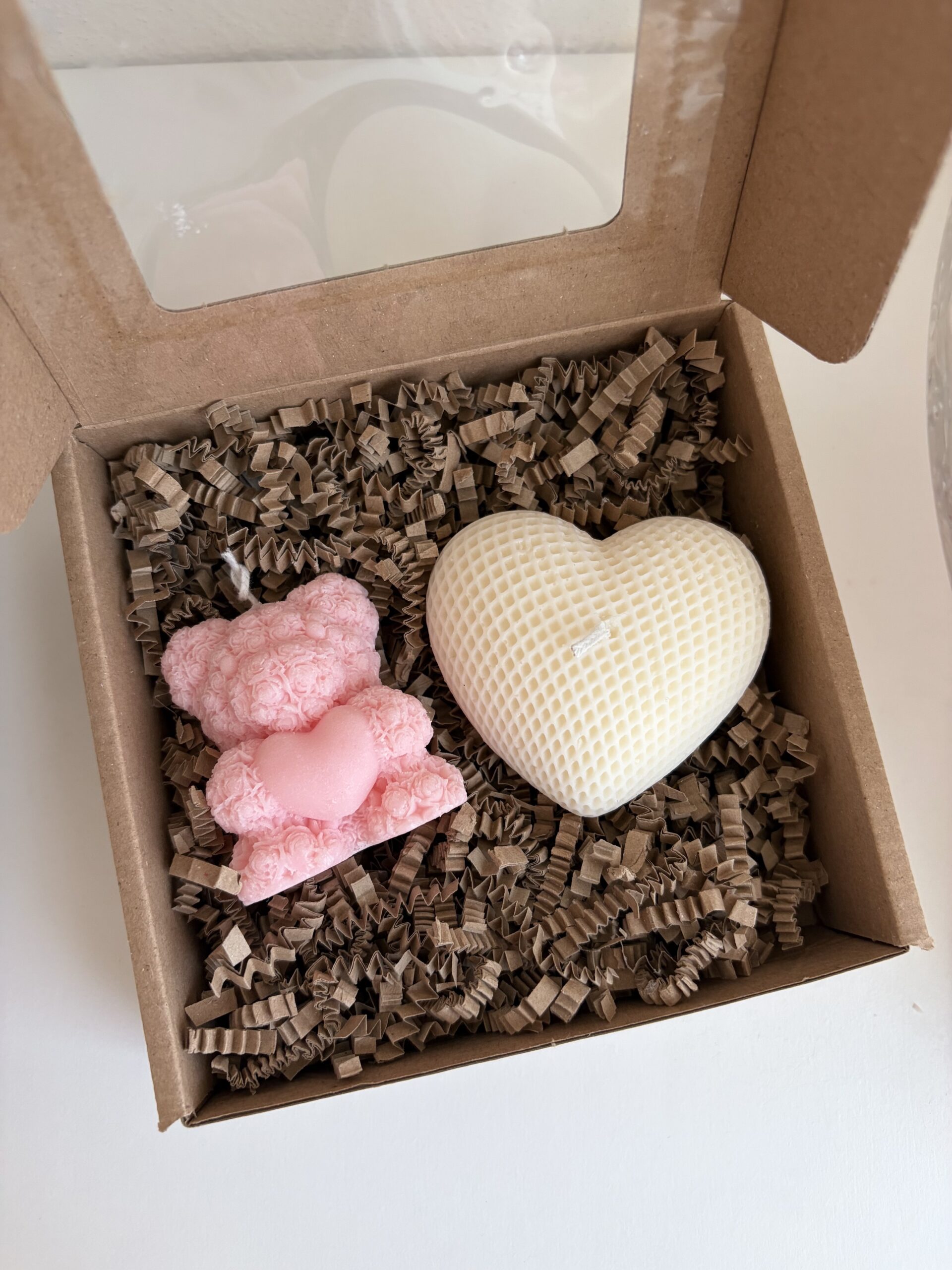 Doprajte si okamih výnimočnosti s darčekovým setom prémiových sójových sviečok v tvare srdiečka a medvedíka. Každý detail týchto ručne odlievaných kúskov spája eleganciu, jemnú krásu a vôňu, ktorá prebudí zmysly.