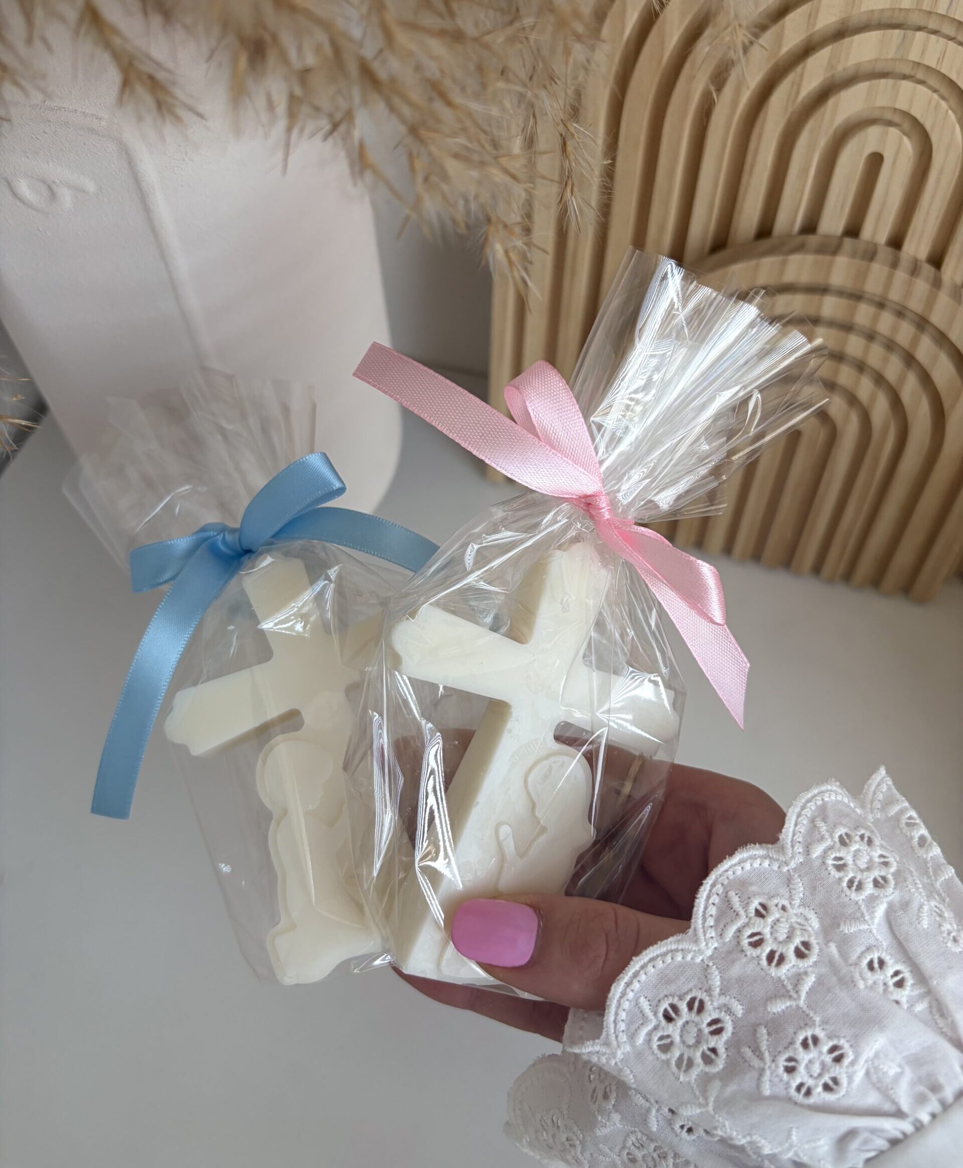 Každý kus je ručne odlievaný s dôrazom na detail, v čistom bielom prevedení, ktoré symbolizuje nevinnosť a čistotu. Sviečka je nielen dekoráciou, ale aj milou spomienkou na jedinečný okamih.