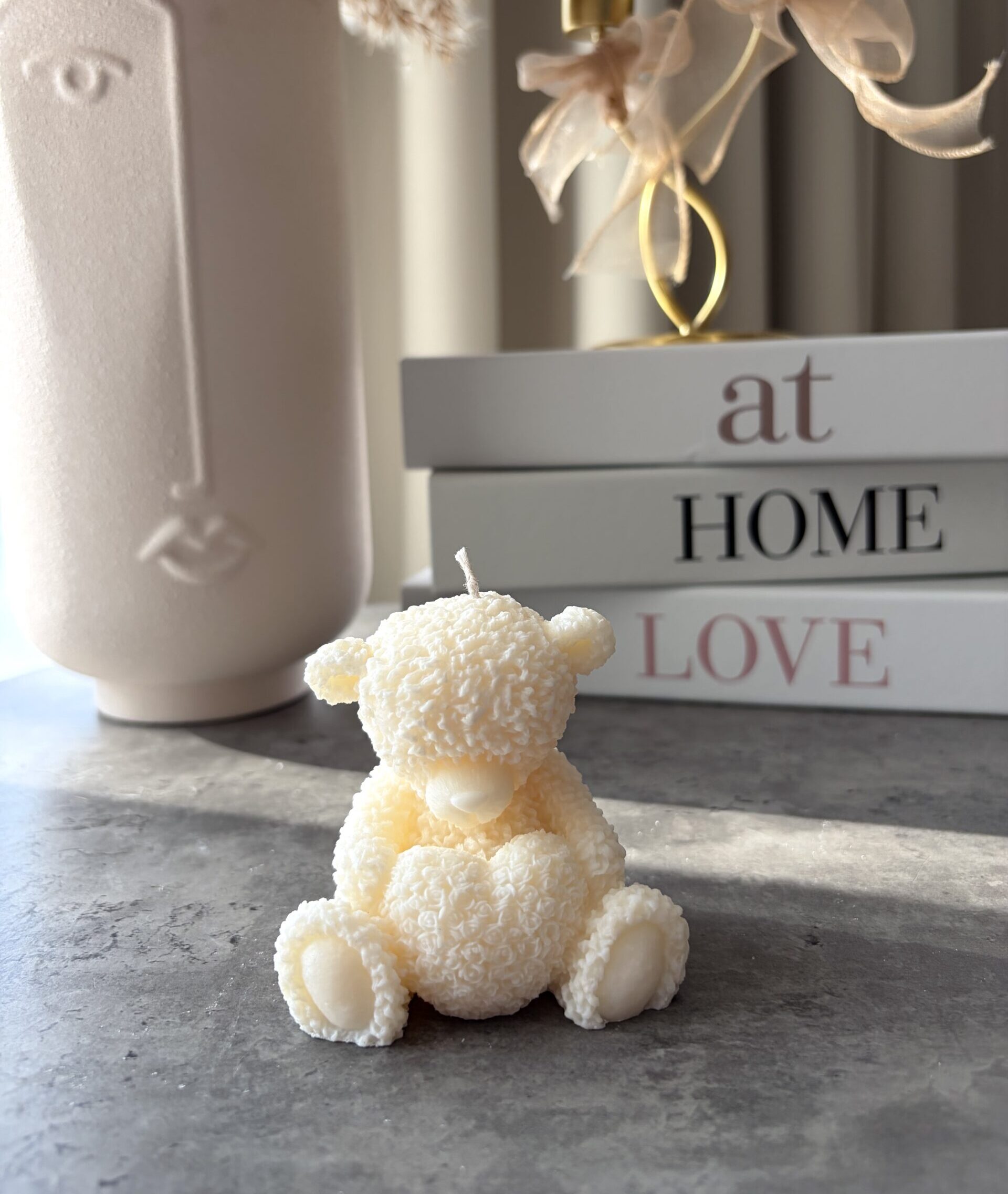 Ručne vyrábaná sójová sviečka Teddy so srdiečkom rozveselí váš domov. Nemala by chýbať každému jednému milovníkovi macíkov.
