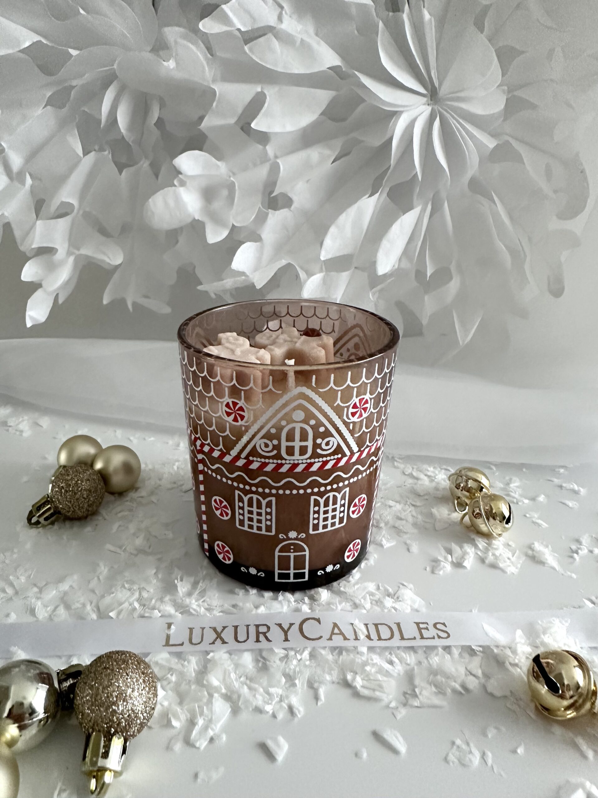 Sójová sviečka Perníková chalúpka je zdobená v pohári zo skla. Táto vianočná sviečka prebudí vaše zmysly a nabudí vás na prichádzajúcu vianočnú náladu. Po vyhorení sviečky môžete nádobu vyčistiť a znova použiť. S vôňou medovníkový perníček.