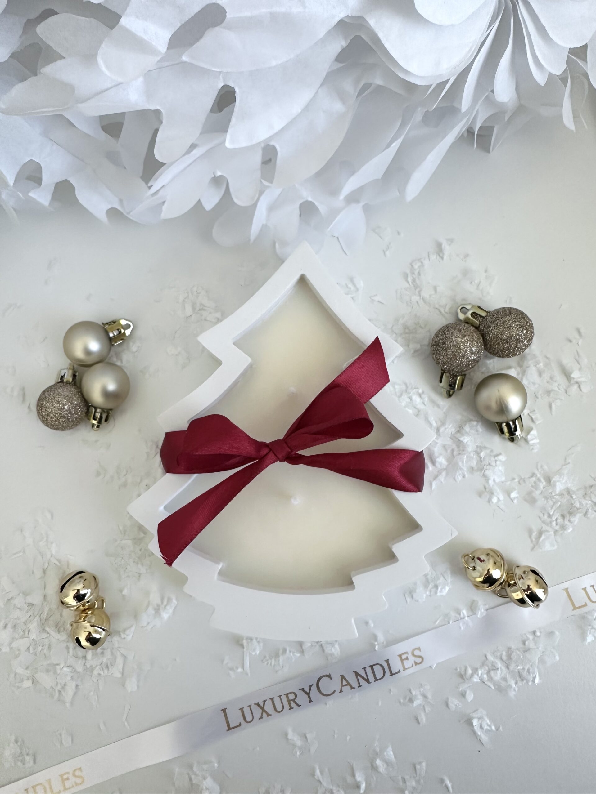 Sójová sviečka Vianočný stromček s mašličkou v nádobe z ekologického materiálu. Táto vianočná sviečka prebudí vaše zmysly a nabudí vás na prichádzajúcu vianočnú náladu. Po vyhorení sviečky môžete nádobu vyčistiť a znova použiť. Sójová sviečka s vôňou Vianočného čara.