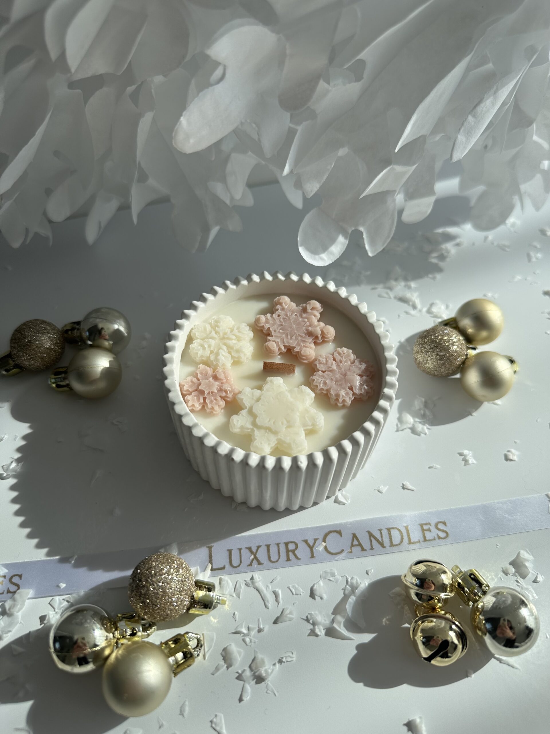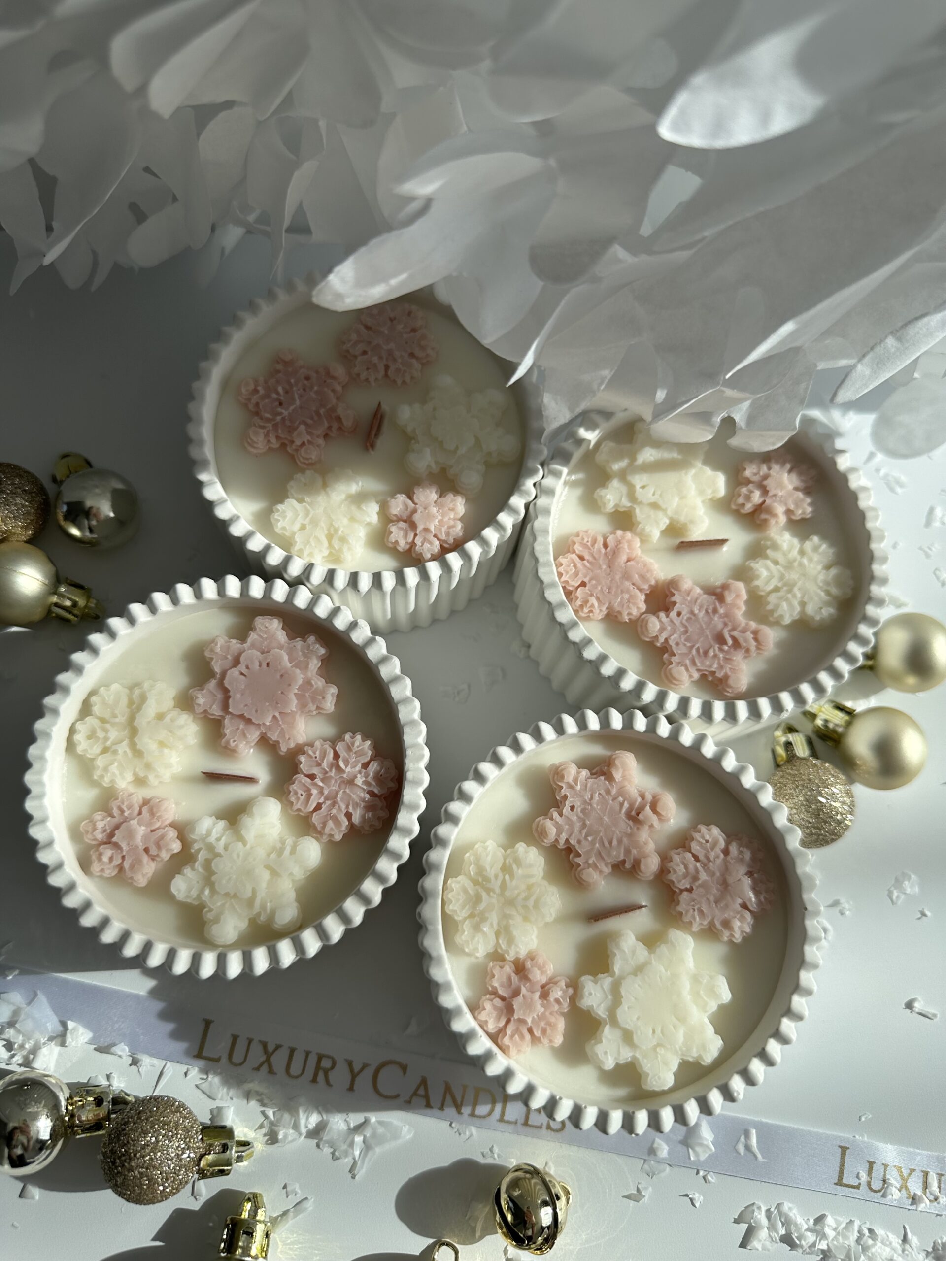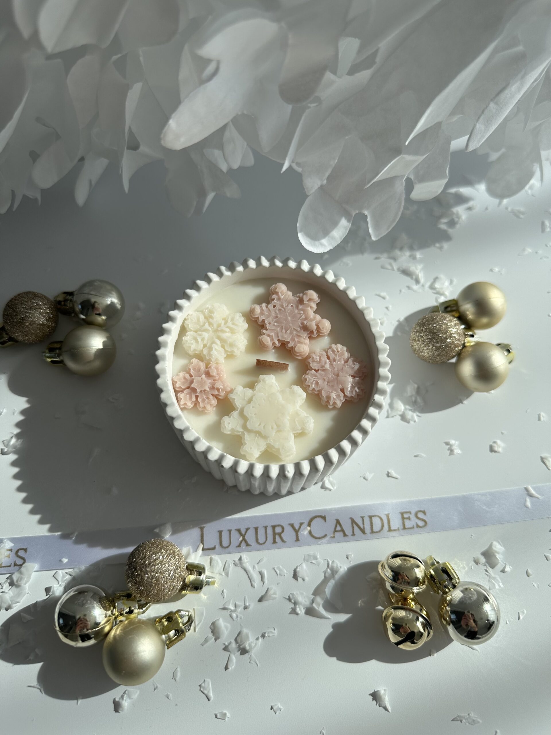 Sójová sviečka Zimné kráľovstvo je zdobená vločkami v nádobe z ekologického materiálu. Táto vianočná sviečka prebudí vaše zmysly a nabudí vás na prichádzajúcu vianočnú náladu. Po vyhorení sviečky môžete nádobu vyčistiť a znova použiť. Môžete si vybrať z dvoch variant knôtu.