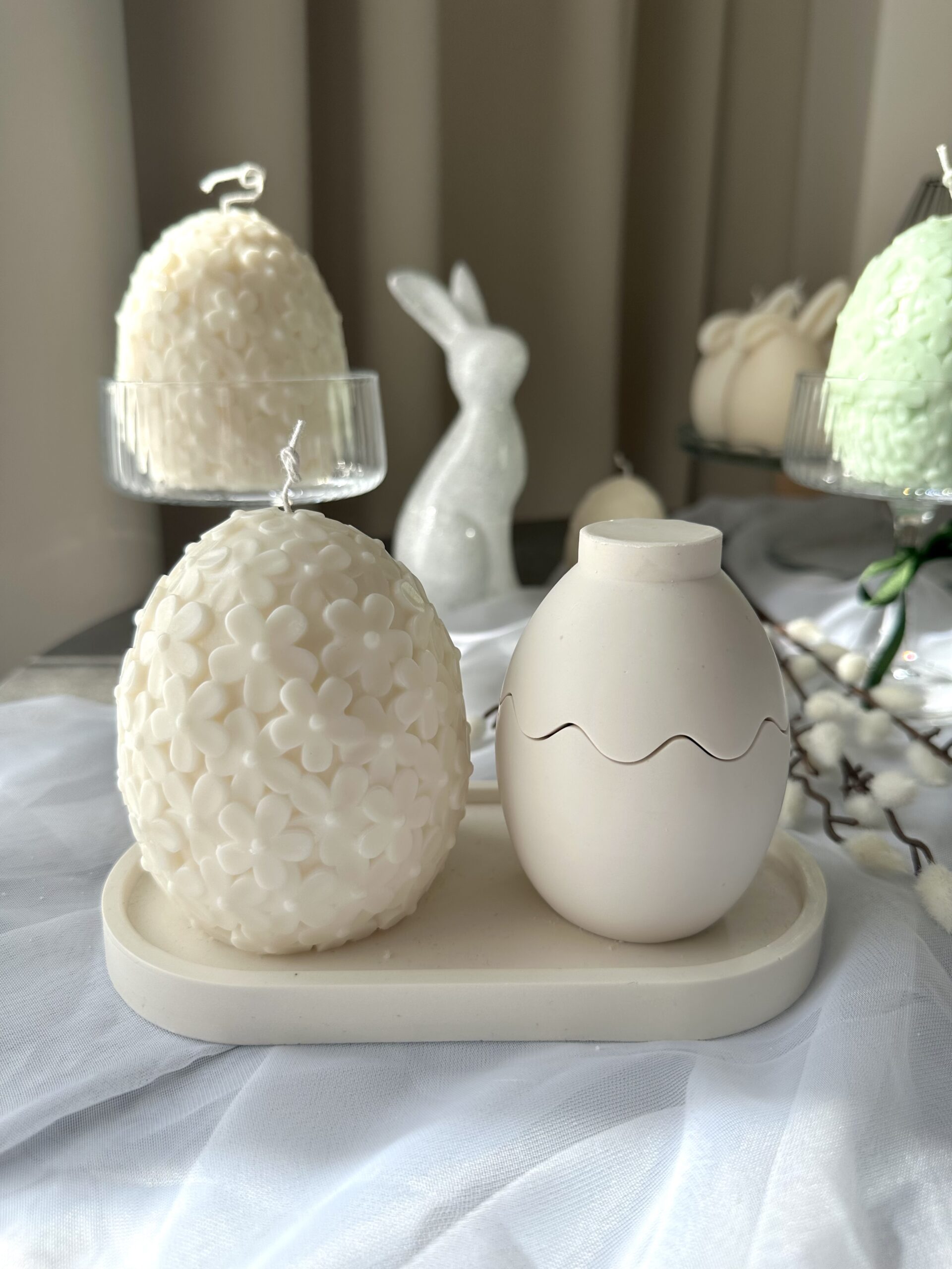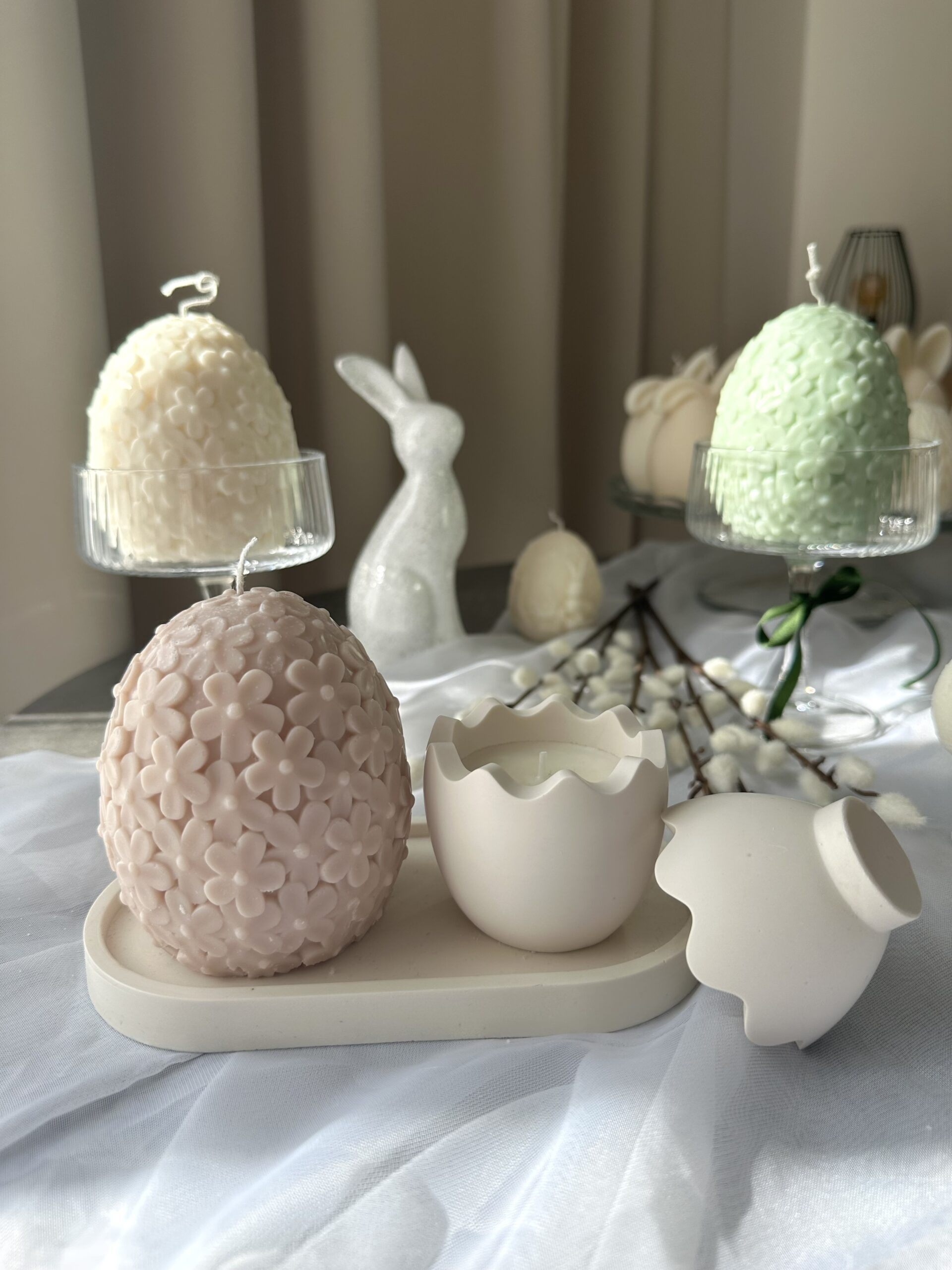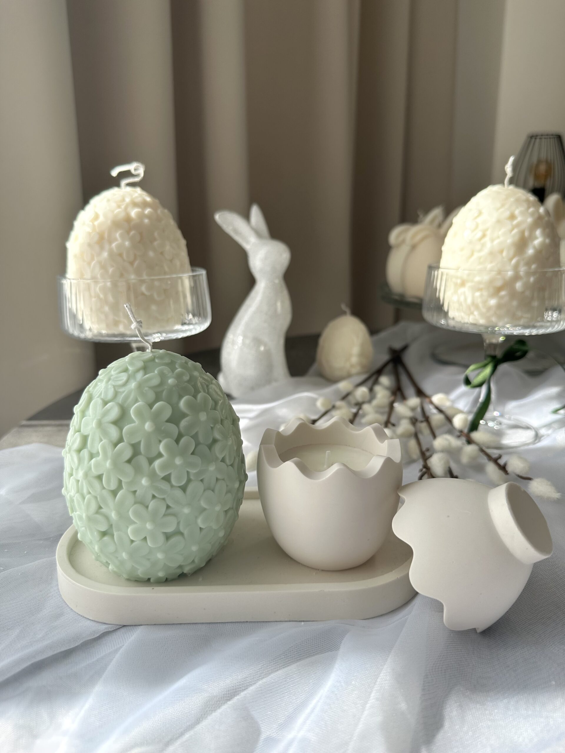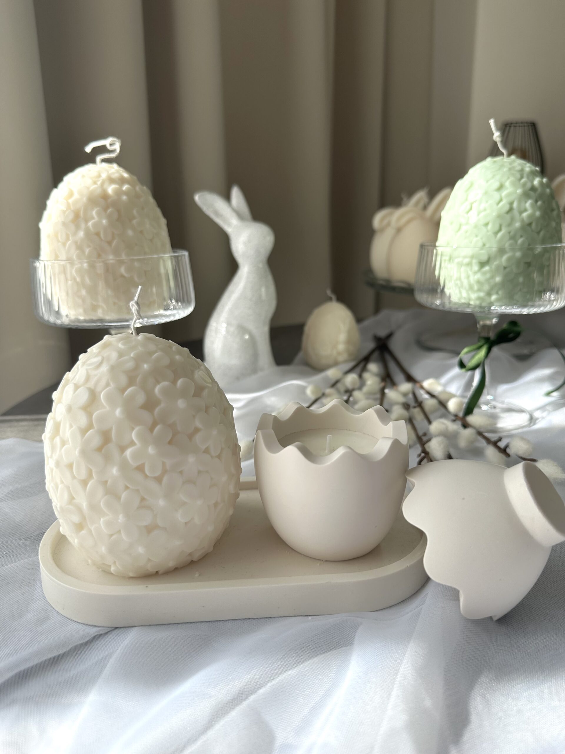Set obsahuje sójové sviečky s podtáckou za zvýhodnenú sumu. V sete si môžete vybrať farbu kvietkovaného vajíčka podľa vlastného výberu.